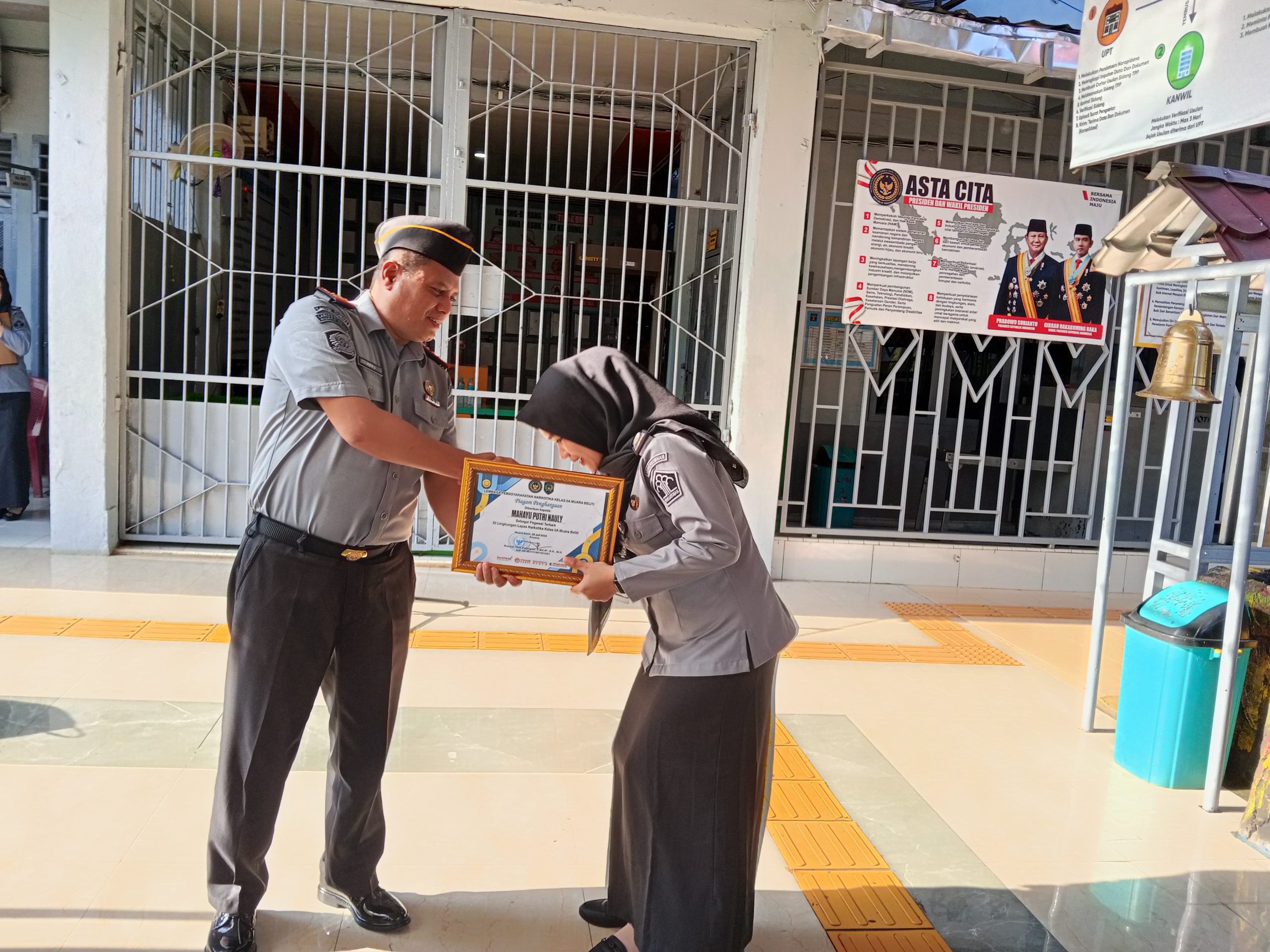Kalapas Narkotika Kelas IIA Muara Beliti Beri Penghargaan kepada Pegawai Mahayu Putri Nauly atas Keberhasilannya Gagalkan Penyelundupan Handphone