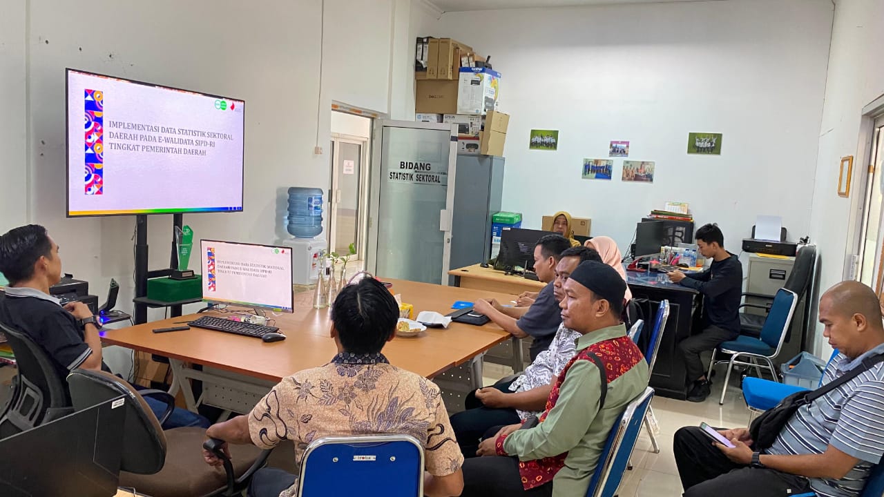 Kedatangan rombongan diterima langsung oleh Pejabat Fungsional Statistisi Ahli Muda Mustito, S.Pd. Bersama Tim Satu Data Musi Banyuasin. Dalam pertemuan tersebut, dilakukan diskusi teknis mengenai alur kerja, koordinasi antar-perangkat daerah, serta pemanfaatan fitur-fitur dalam E-Walidata SIPD guna menunjang tata kelola data sektoral di tingkat daerah.