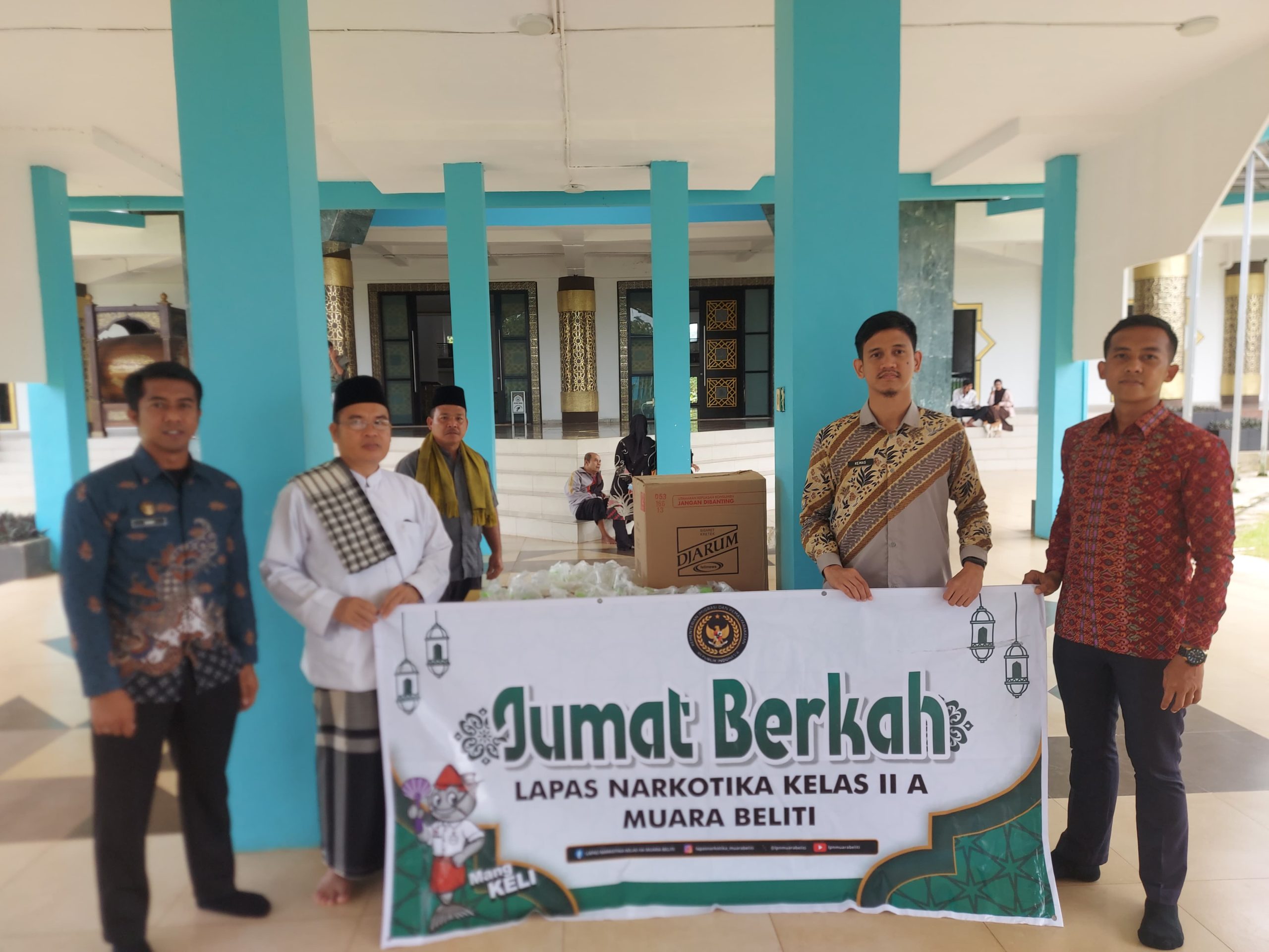 Dalam semangat berbagi dan mempererat tali silaturahmi, Lembaga Pemasyarakatan (Lapas) Narkotika Kelas IIA Muara Beliti mengadakan kegiatan **Jumat Berkah** di Masjid Agung Muara Beliti, Kabupaten Musi Rawas.