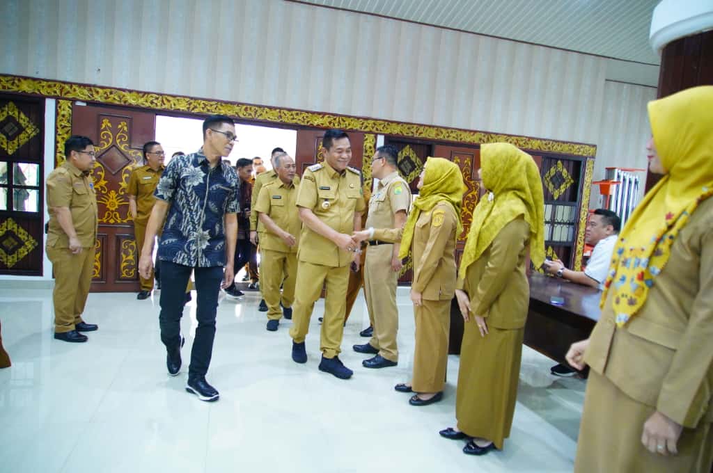 Dr Apriyadi MSi, para Asisten Setda Muba serta Kepala Perangkat Daerah Kabupaten Muba. Suasana penuh keakraban tercipta di tengah diskusi yang membahas berbagai isu strategis pembangunan daerah.