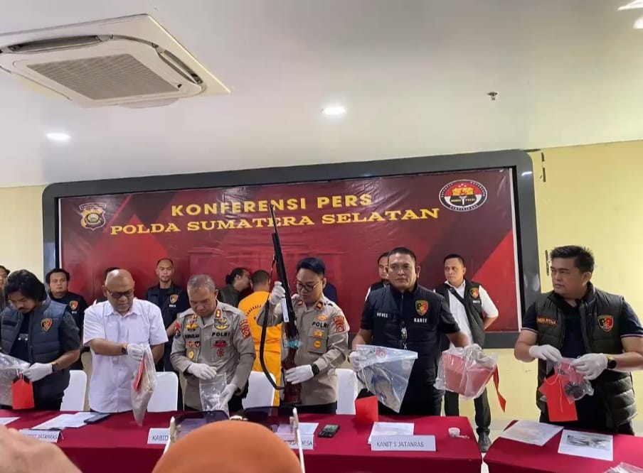 Palembang, Direktorat Reserse Kriminal Umum (Ditreskrimum) Polda Sumatera Selatan menggelar konferensi pers terkait pengungkapan kasus dugaan tindak pidana pembunuhan yang terjadi di Desa Ngulak III, Kecamatan Sanga Desa, Kabupaten Musi Banyuasin (Muba). Konferensi pers berlangsung pada Rabu (29/10/2025) pukul 14.00 WIB di Ruang Konferensi Pers Bidhumas Polda Sumsel, Basement Gedung Presisi Polda Sumsel.