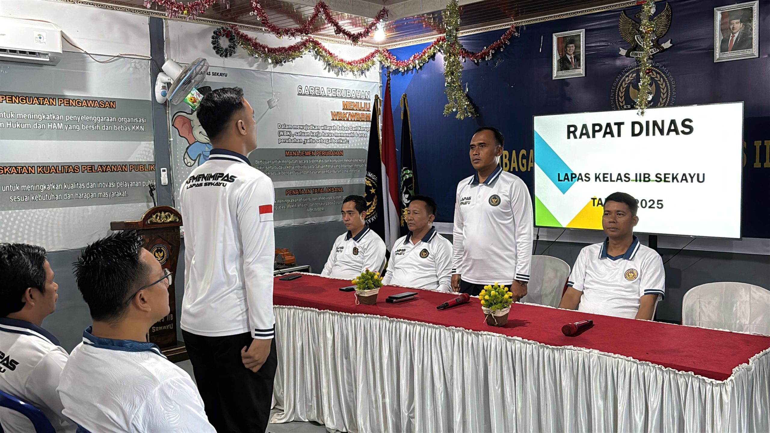 Muba, kabarsumsel.com – Kalapas Sekayu, Aris Sakuriyadi, memberikan pengarahan kepada seluruh jajaran petugas, sebagai bagian dari evaluasi pelaksanaan tugas dan fungsi (tusi), serta penguatan komitmen dalam mengimplementasikan 15 Program Aksi Kementerian Imigrasi dan Pemasyarakatan (Kemenimipas), Sabtu (27/12/2025).