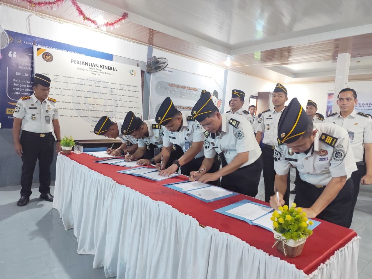 Kegiatan ini diikuti oleh seluruh pejabat struktural, ditandai dengan penandatanganan perjanjian kinerja antara para kepala seksi kepada kalapas, serta antara kepala sub seksi kepada masing-masing kepala seksi. Momentum ini menjadi penegasan komitmen bersama dalam menjalankan tugas dan fungsi secara terukur, akuntabel, dan berorientasi pada hasil sejak awal tahun.